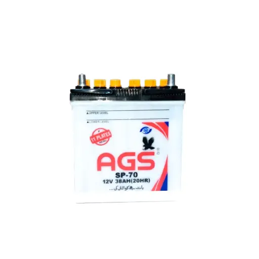 The AGS SP-70 is a high-performance car battery with 11 plates per cell and a 38Ah capacity, designed to provide reliable power and smooth vehicle operation. It delivers excellent cranking power, ensuring quick engine starts even in extreme weather conditions. Built with durable materials, it resists vibrations and enhances battery life, making it an ideal choice for various cars.